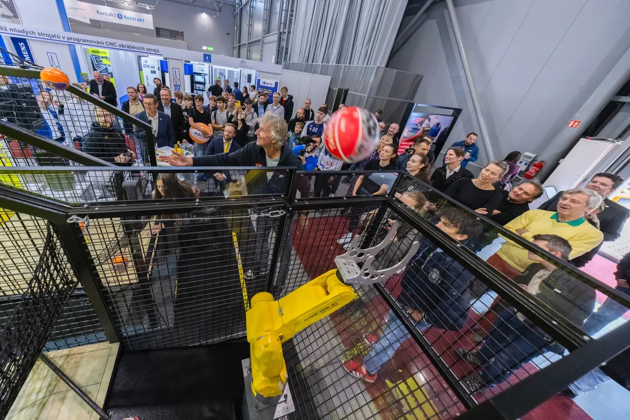 Skupina SkyLimit Industry ve spolupráci s výrobcem robotů Fanuc připravila expozici s ukázkami mobilních robotů, kolaborativních systémů a pokročilých robotických řešení pro průmysl, logistiku i potravinářství. Na volném prostranství pak čekal speciální robot FANUC LR Mate 200iD s kovovou „rukou“, který se strefuje do basketbalových košů.