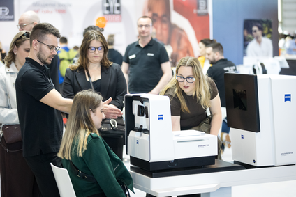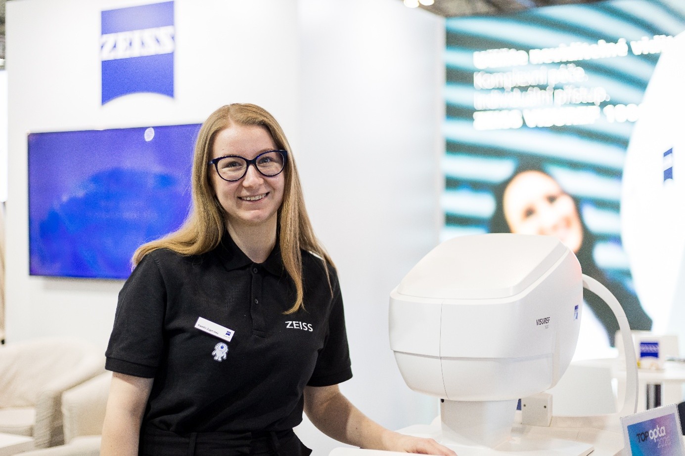 Stánek společnosti Carl Zeiss patří na veletrhu OPTA k těm, kde se potkává špičková technologie s každodenní praxí optiků. Letos zde firma představuje nejen nové portfolio brýlových čoček, ale také moderní přístrojové vybavení pro vyšetření zraku.