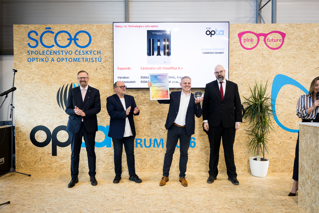 Páté ocenění pro nejlepší exponáty jubilejního 30. ročníku veletrhu OPTA si z Brna odveze společnost ESSILOR-OPTIKA, spol. s r. o., která zvítězila v kategorii Technologie v oční optice se svou centrační věží Visioffice X +. Ocenění je uděleno za technologické inovace použité v přístroji Visioffice®, který využívá při své práci také umělou inteligenci pro přesné měření parametrů a automatický boxing. Tento přístroj výrazně zvyšuje přesnost měření a pohodlí klientů.