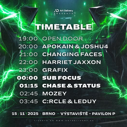 Brněnské výstaviště se rozezní dunivými basy a elektrizující energií! Už v sobotu 15. listopadu se do pavilonu P chystá největší Drum & Bass událost letošního podzimu. Hlavní hvězdy? Nikdo jiný než legendární britské duo CHASE & STATUS, které v rámci svého evropského turné odehraje jedinou show v České republice i na Slovensku právě v Brně!