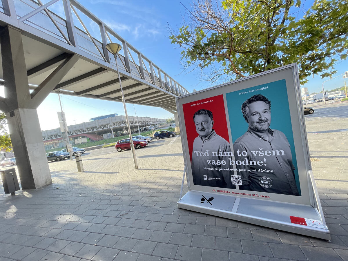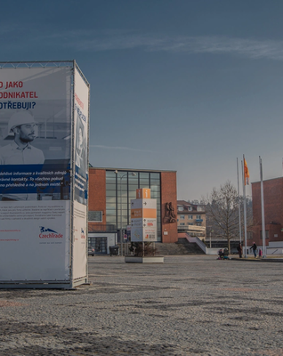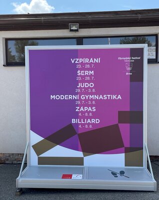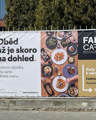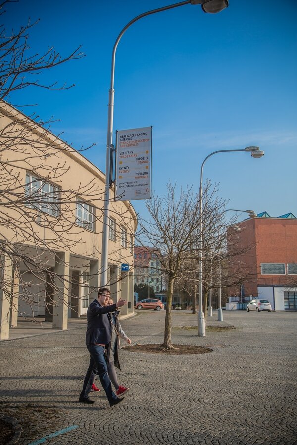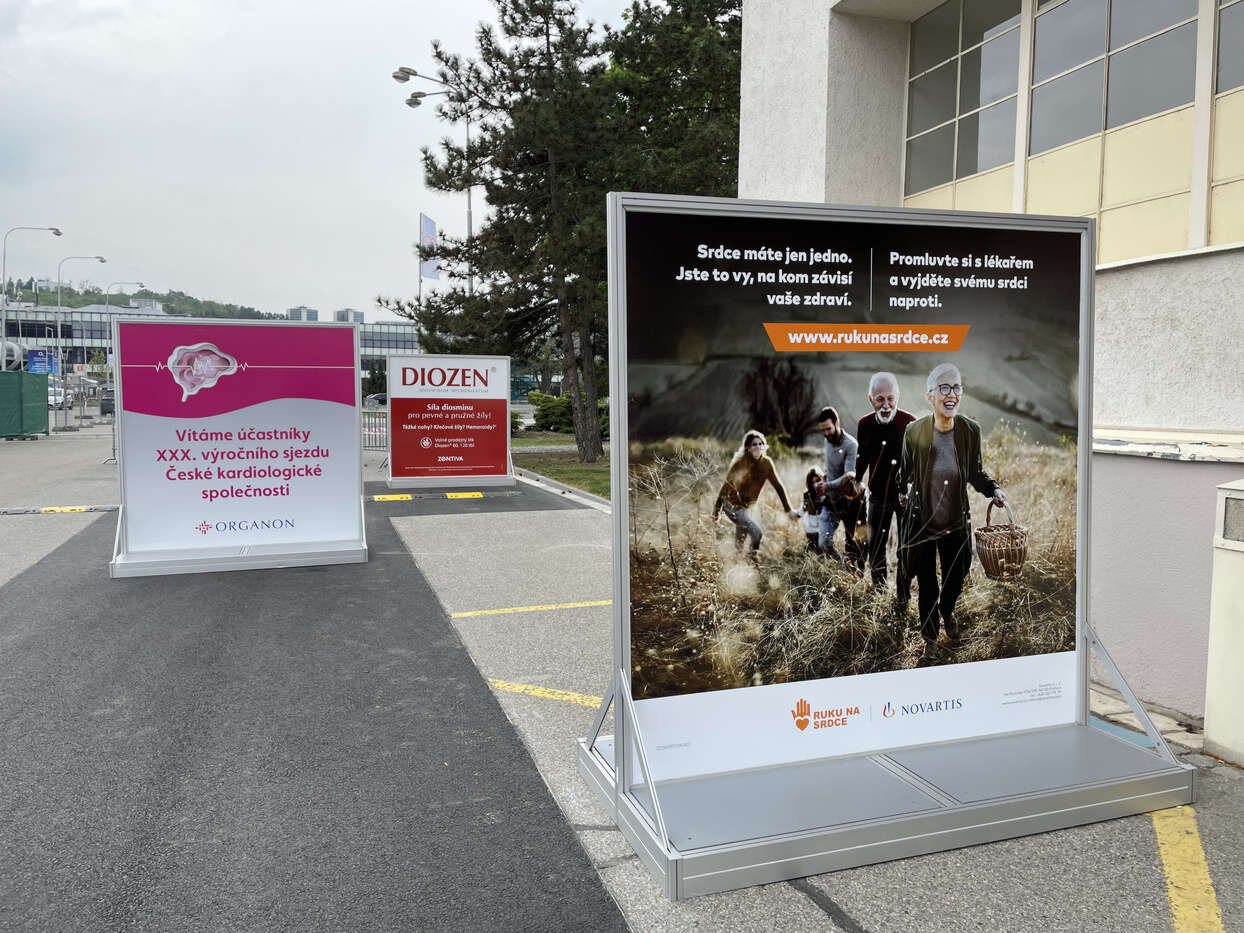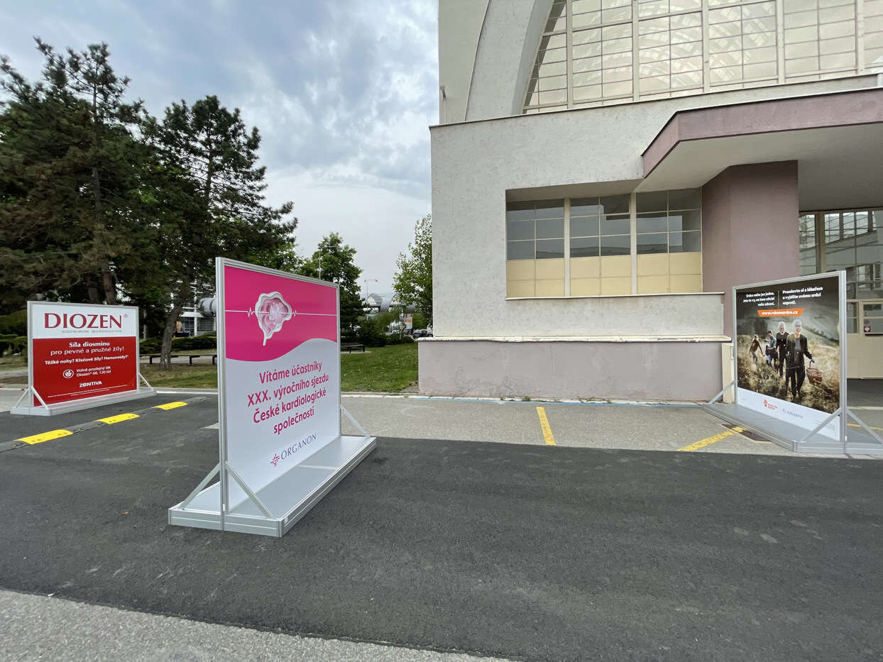 - Reklamní bannery (z plachtoviny) pro upevnění na zábradlí v pavilonech nebo na sloupy veřejného osvětlení