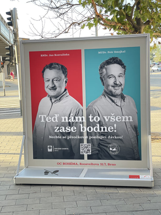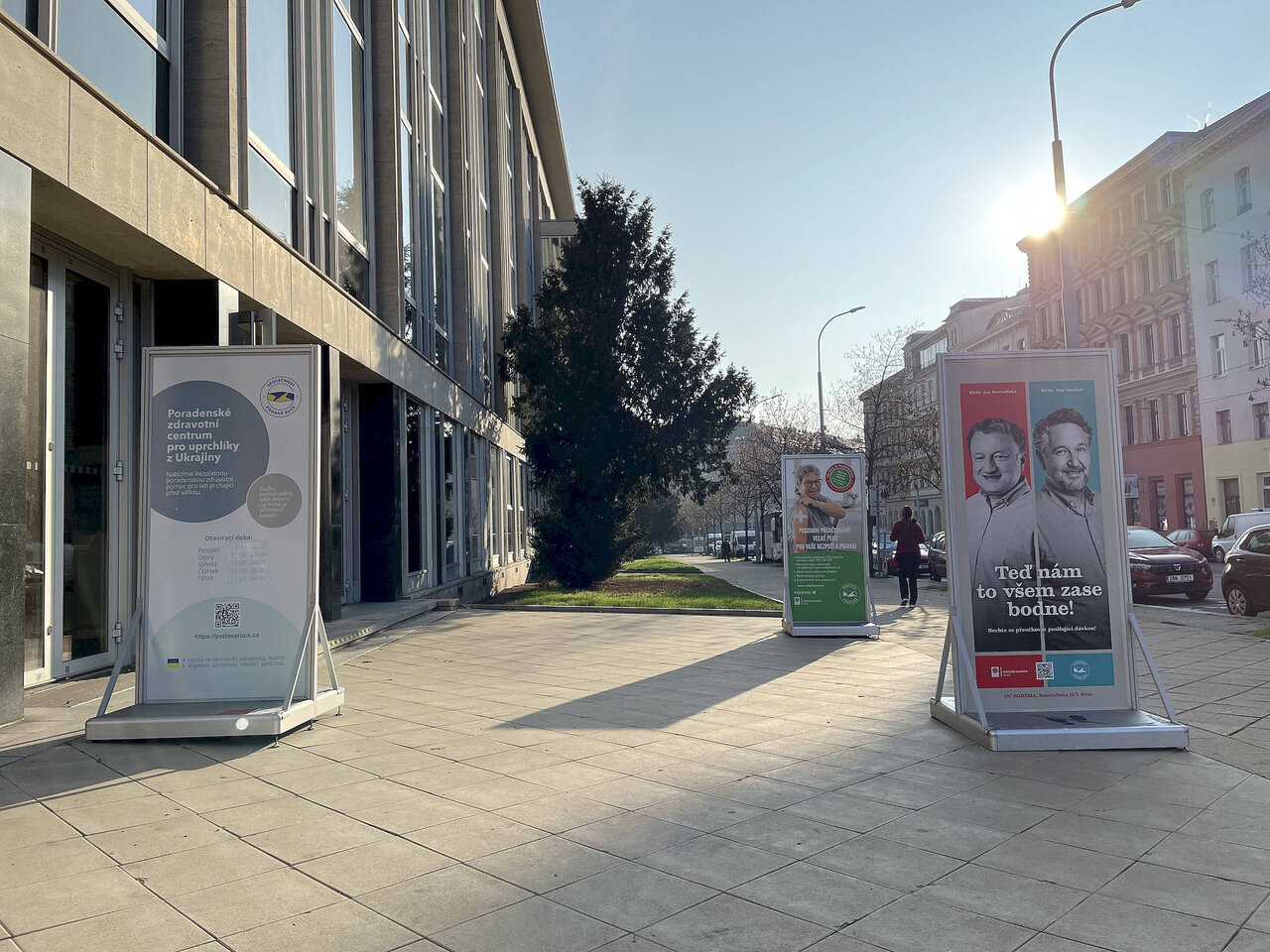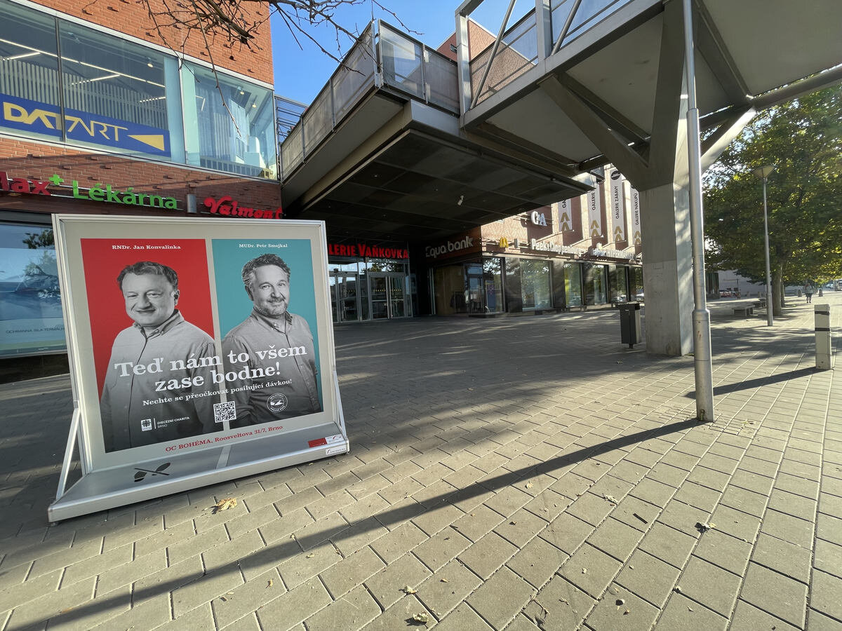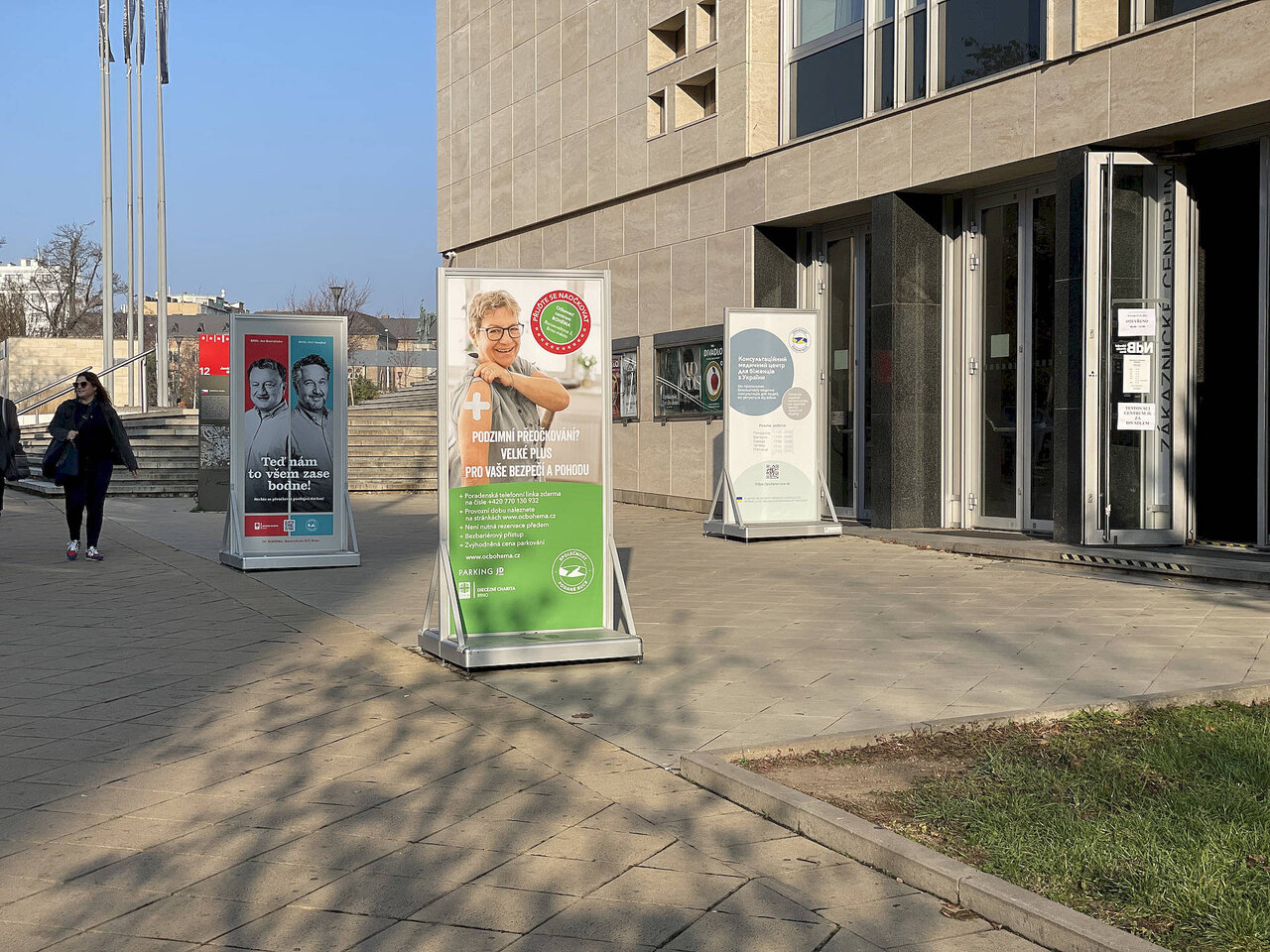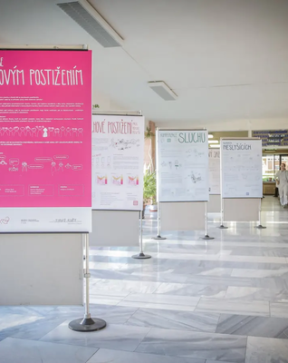 - Reklamní bannery (z plachtoviny) pro upevnění na zábradlí v pavilonech nebo na sloupy veřejného osvětlení