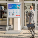 Moderní infostojany s minimalistickým designem bez orámování umožňují snadné řešení pro efektivní navigaci osob pohybujících se v jejich blízkém okolí.