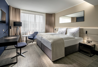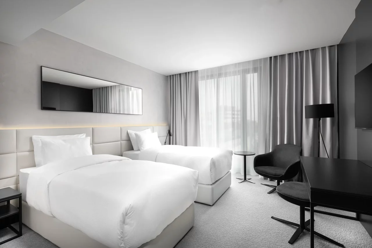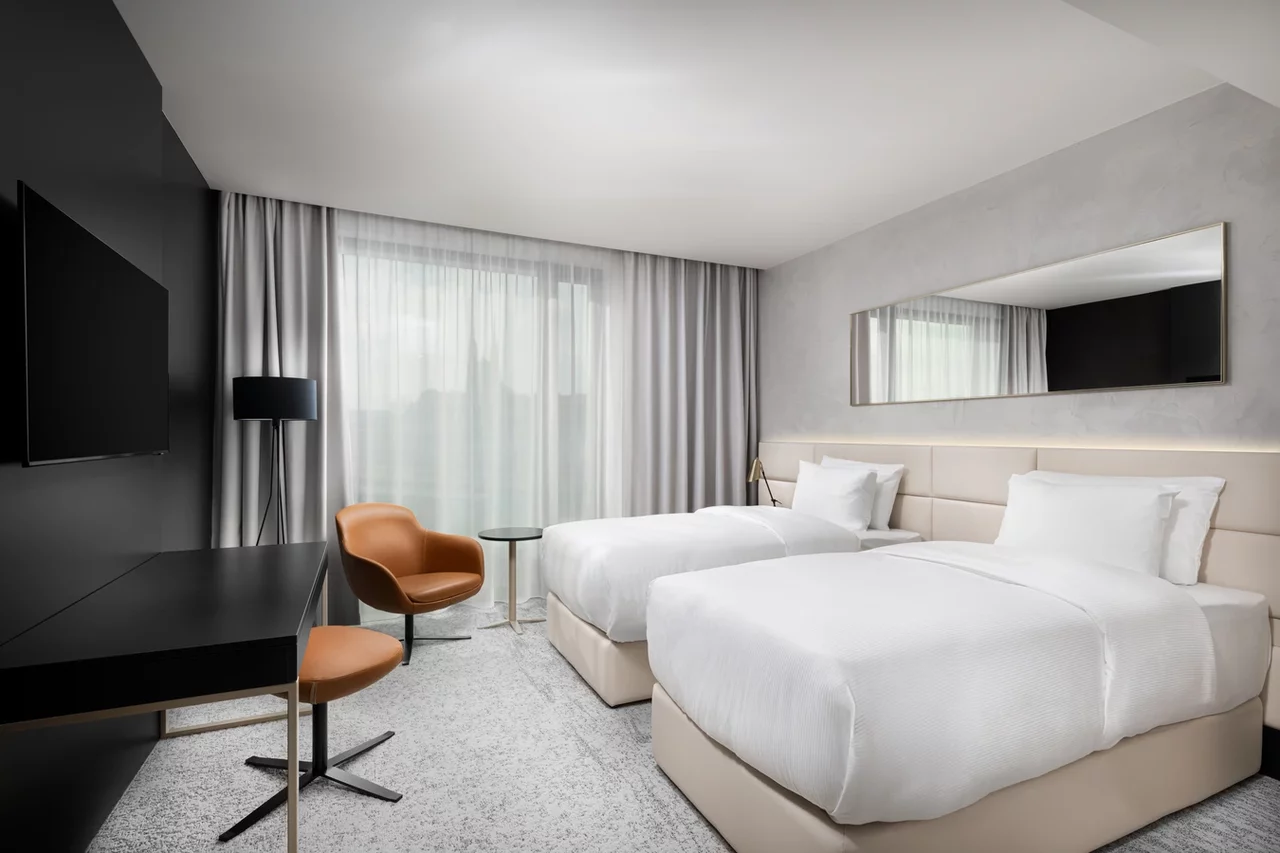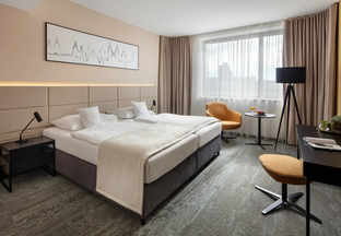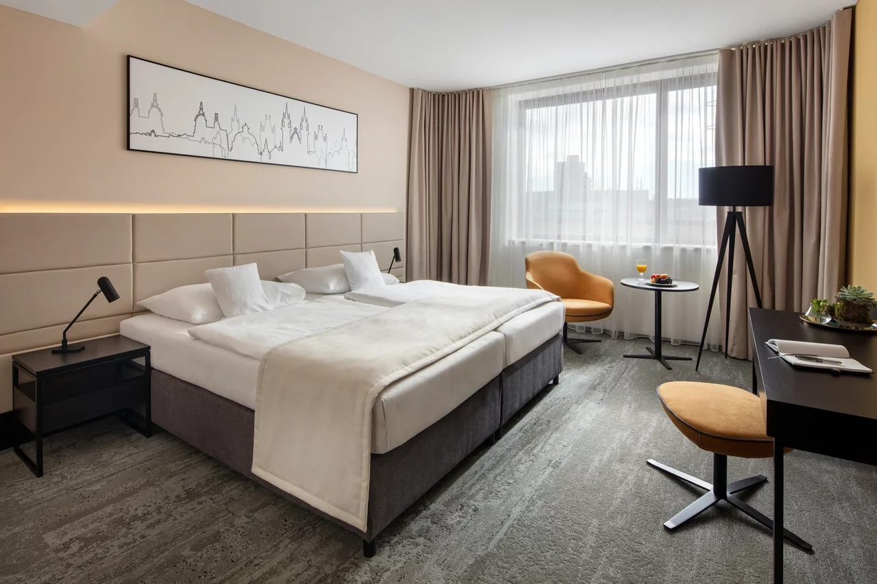 Hosté se mohou těšit na moderní ubytování v 200 pokojích typu Deluxe – king nebo twin, Executive, Premier, Business Apartmá + Apartmá Petrov.