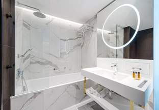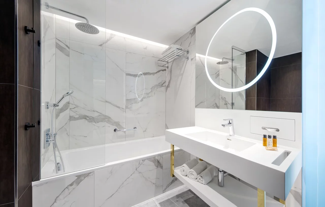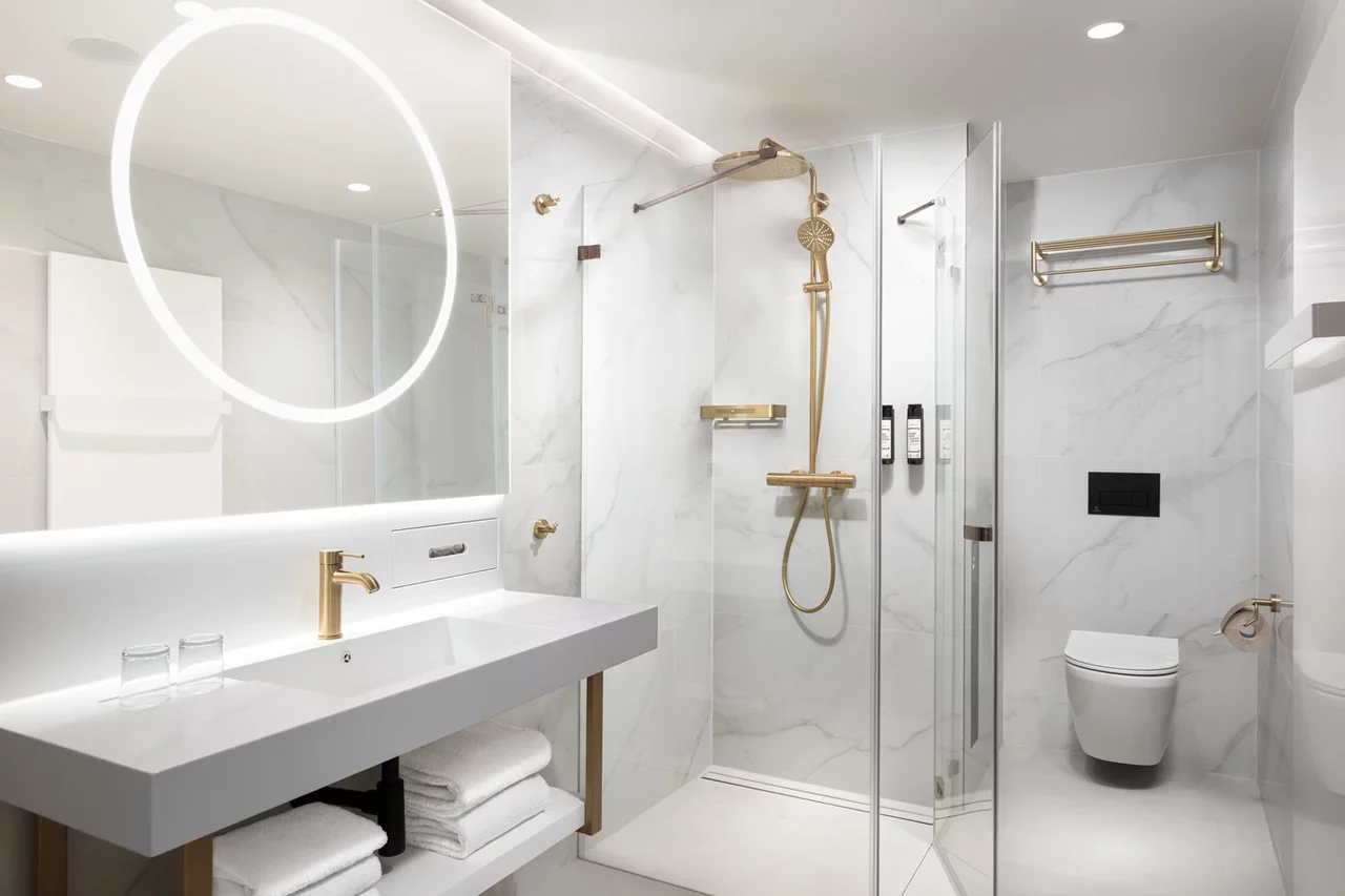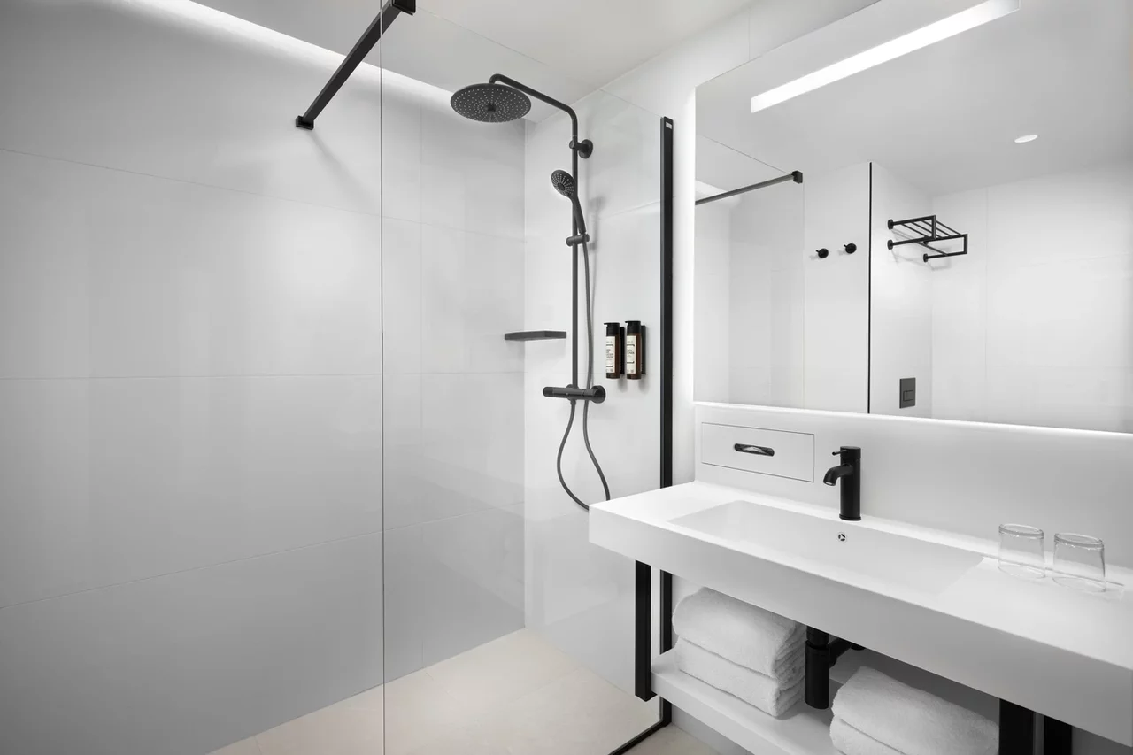 Vybavení pokojů: klimatizace, Smart TV vč. streamovacích služeb, Wi-Fi, trezor, fén, set na přípravu čaje a kávy, pracovní stůl, vana nebo sprcha.