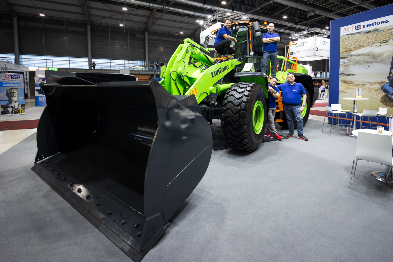 Na veletrhu představujeme stroje výrobce LiuGong. Přivezli jsme kompletní průřez naším sortimentem – od malých pásových rypadel až po velká pásová rypadla, stejně tak malé, střední i velké kolové nakladače.