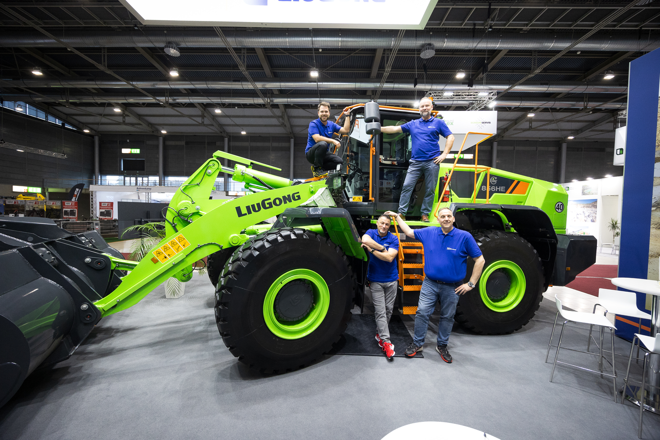 Ano. Vystavujeme také plně elektrický bateriový kolový nakladač LiuGong 856HE. Ten má hmotnost 21 tun a čelní lopatu o objemu 3,7 m³. Nabízíme jej v kombinaci s nabíječkou baterií KEMPOWER.