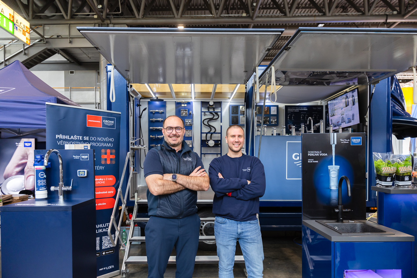 „Máme tady takovou menší verzi našeho bývalého kamionu, ale pořád v ní najdete to nejdůležitější – od kuchyňských baterií přes sprchové systémy až po instalační technologie,“ říká jednatel Jan Raszka.