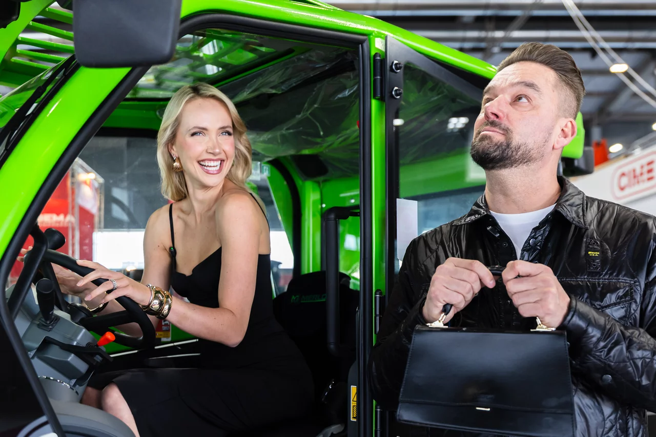O pár kroků dál už je čekal svět těžké techniky. Na stánku CIME obdivovali bagry, které zaujaly především svou robustností. „Tohle je přesně ten moment, kdy se ve vás probudí ten malej kluk,“ komentoval Petr Švancara.Technologický kontrast přinesl stánek VUT, kde si oba prohlédli moderní inovace včetně robotického psa. „Tak tohle bych chtěla domů,“ reagovala se smíchem MichaelaTomanová, zatímco Švancara zkoumal, co všechno robopes dokáže. Silný zážitek přinesla expozice AB Machinery. Právě tady došlo na jeden z nejzábavnějších momentů celé návštěvy – Petr Švancara totiž zvedl Michaelu Tomanovou na lžíci nakladače. „Drž se, jedeme!“ volal s úsměvem, zatímco Michaela Tomanová se smála: „Tohle jsem fakt nečekala!“