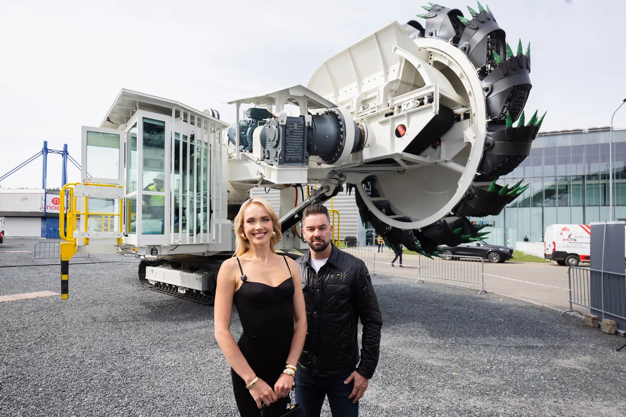 Venkovní plocha pak patřila ikonám českého průmyslu. Dvě tatrovky – modrá a bronzová – přitahovaly pozornost na první pohled. Petr Švancara neváhal a usedl za volant. „Jako kluk jsem o tomhle snil,“ přiznal. Michaela Tomanová ho doplnila: „Je to neuvěřitelný stroj, člověk z toho má respekt.“ Ještě větší respekt budilo obří rypadlo od společnosti Noen, které oba označili za jeden z vrcholů veletrhu. „Tohle je prostě gigant,“ komentoval Petr Švancara.