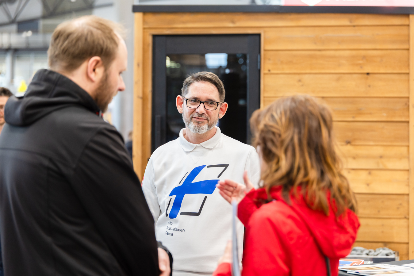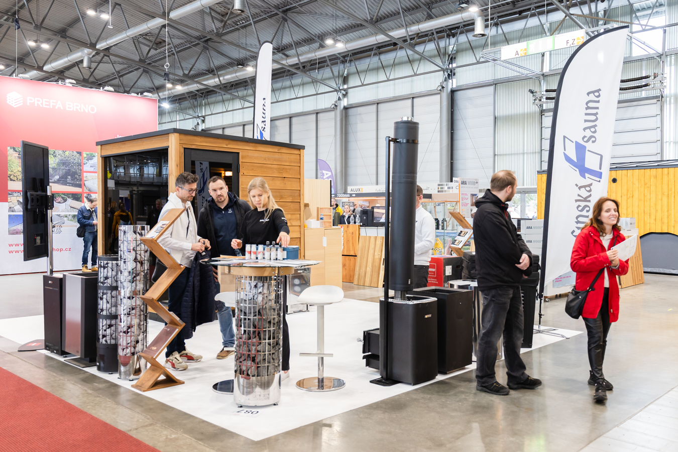 Na Stavebním veletrhu nechybí ani vůně dřeva a klidná atmosféra – stánek společnosti Finská sauna láká návštěvníky na kompletní řešení domácího wellness. Jak říká Stanislav Jirák, firma se zaměřuje nejen na výrobu saun, ale i na jejich kompletní vybavení.