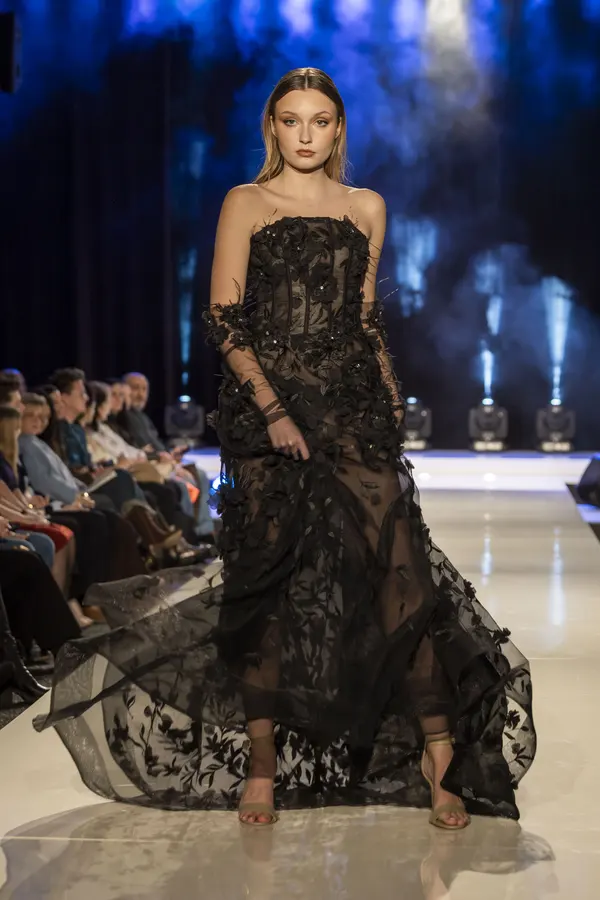 Petr Kalouda vsadil na kontrasty a strukturální práci s materiálem. Jeho kolekce nabídla nestárnoucí černou, pastelové tóny, historizující vzory, průsvity, perforace i geometrické střihy. „Nestárnoucí černá, pastelové barvy, sportovní i elegantní prvky – to všechno najdete v aktuální kolekci,“ zaznělo při jejím uvedení. Výsledkem byla dynamická, současná móda s jasným rukopisem. Poprvé se také na mole objevili muži, a to k velkému potěšení všech žen v publiku.