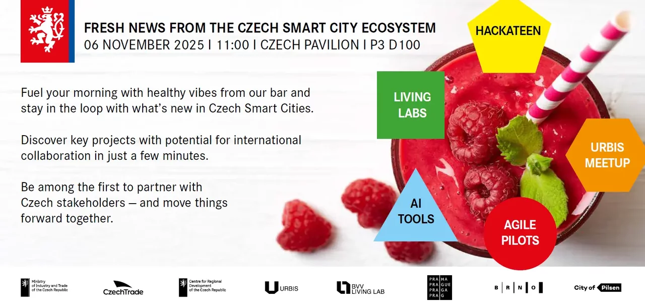 Přijďte se inspirovat českými inovacemi pro chytrá města, poznat nové partnery a zjistit, jak Česká republika propojuje technologie, municipalitu a udržitelný rozvoj.
