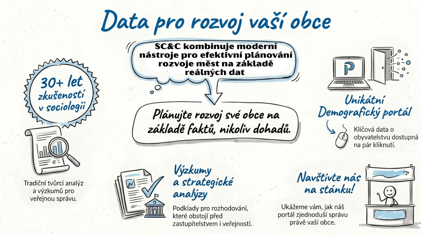 Máme více než 30 let zkušeností se sociologickými výzkumy a jsme tvůrci unikátního Demografického portálu. Pomáháme městům a obcím plánovat rozvoj na základě reálných dat o populaci: